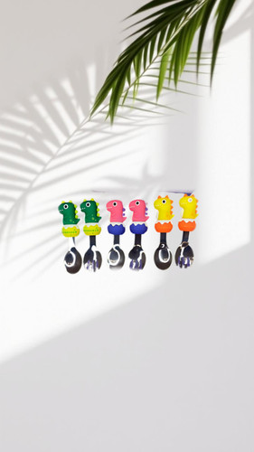 قاشق چنگال کودک مدل خرسی رنگ قهوه ای