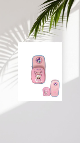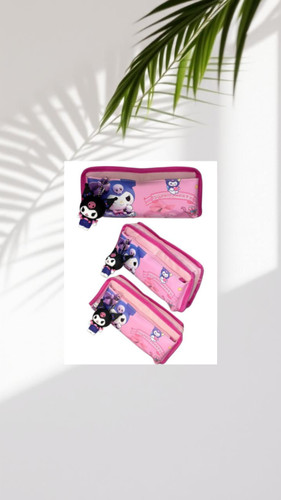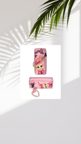 جامدادی اورجینال وارداتی فانتزی دو زیپ طرح کرومی دو تیکه(بج دار) صورتی