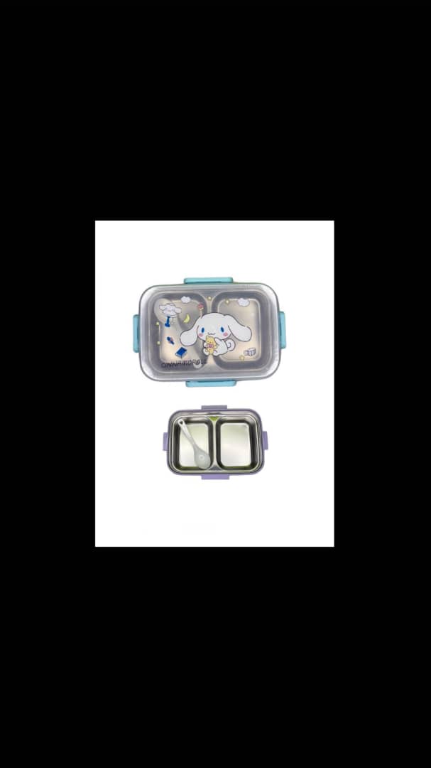 ظرف غذا اورجینال وارداتی استیل دارای دو محفظه و قاشق سینامورول