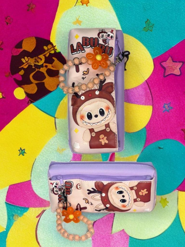 جامدادی اورجینال وارداتی فانتزی دو زیپ آویزدار طرح لبوبو