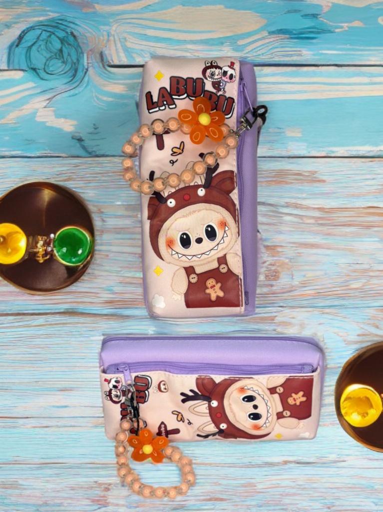 جامدادی اورجینال وارداتی فانتزی دو زیپ آویزدار طرح لبوبو